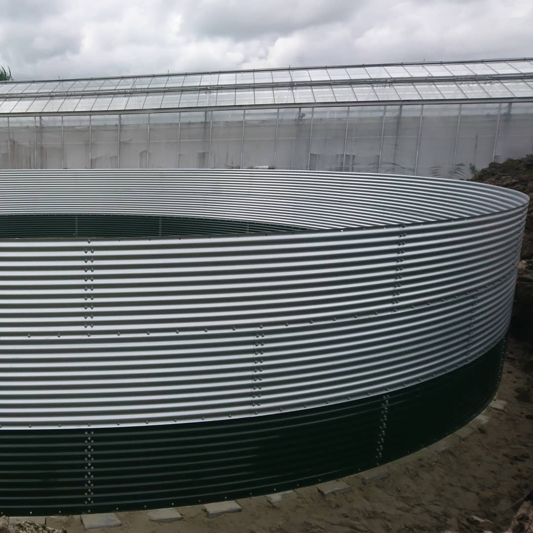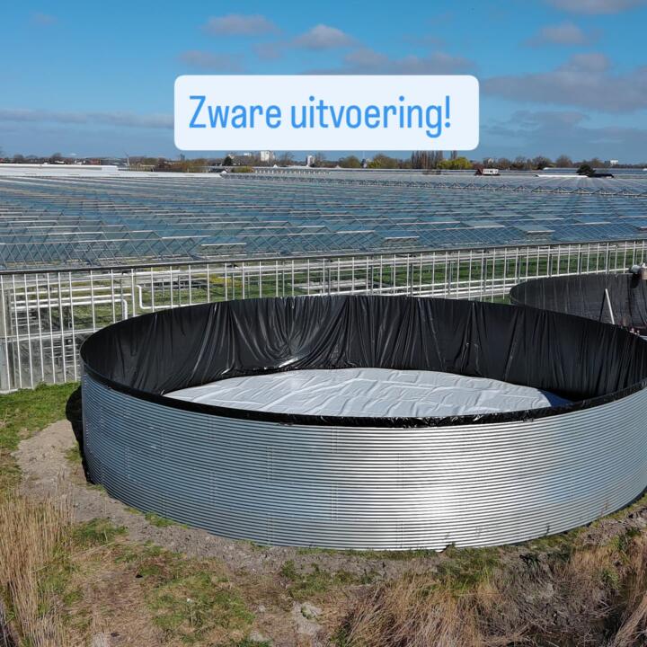 For sale: a new Buwatec watertank WSA extra heavy duty version.. 1336m3 capacity. Dimension is 20,94m x 3,88m high. 5 Rings of 23 galvanised plates. The bottom ring is factory-coated for extra protection Delivered with a new silo cover with all fastening materials and wall felt. Penetrations can also be made in the floor for, for example, an overflow or suction pipe. Allso available a Delafloat anti-algea floating cover . Pictures are examples of watertanks .