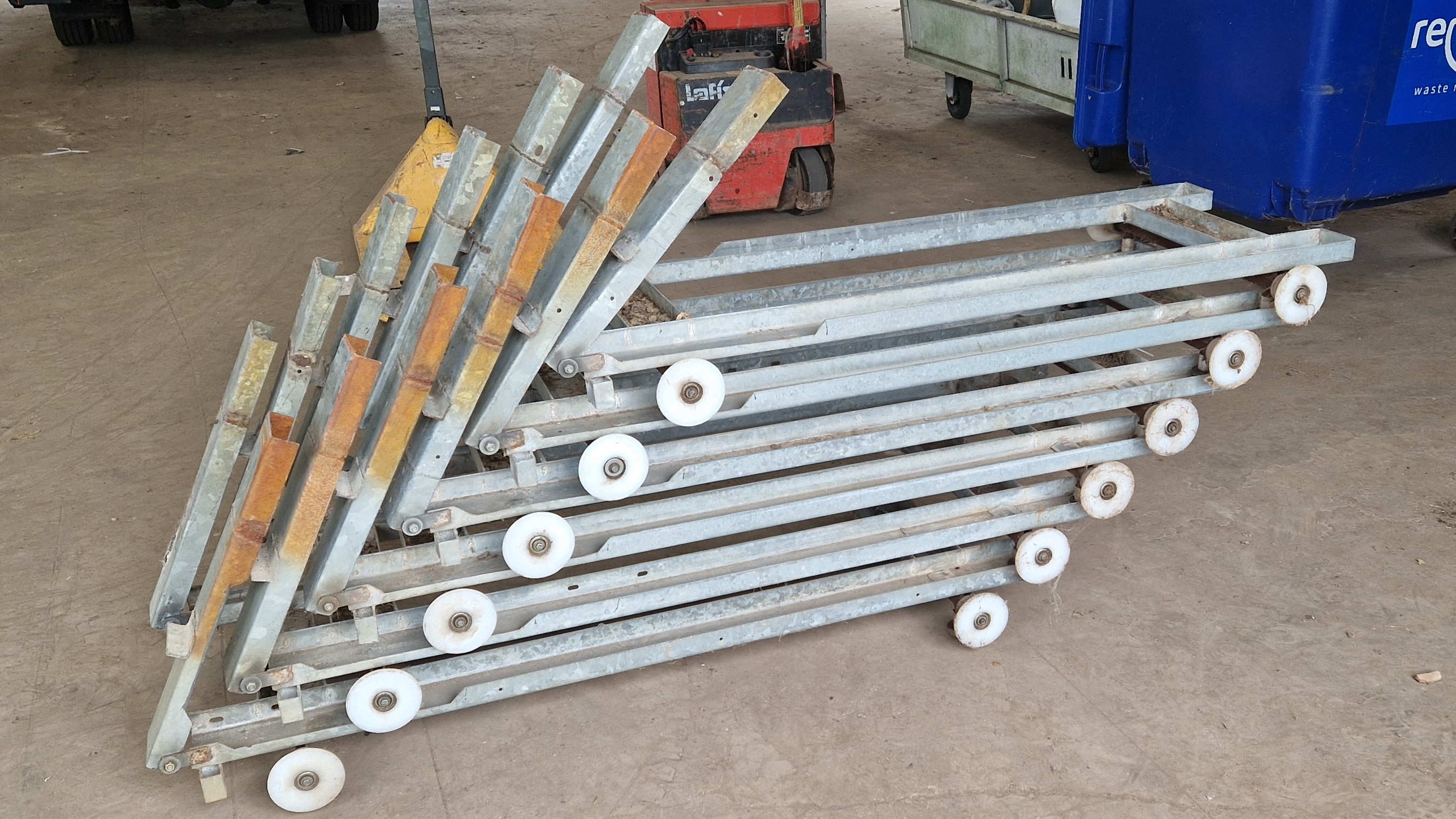 Buisrailwagen om DC-karren over buisrail te transporteren, voor buisrail 55-60cm, totaal 6 stuks