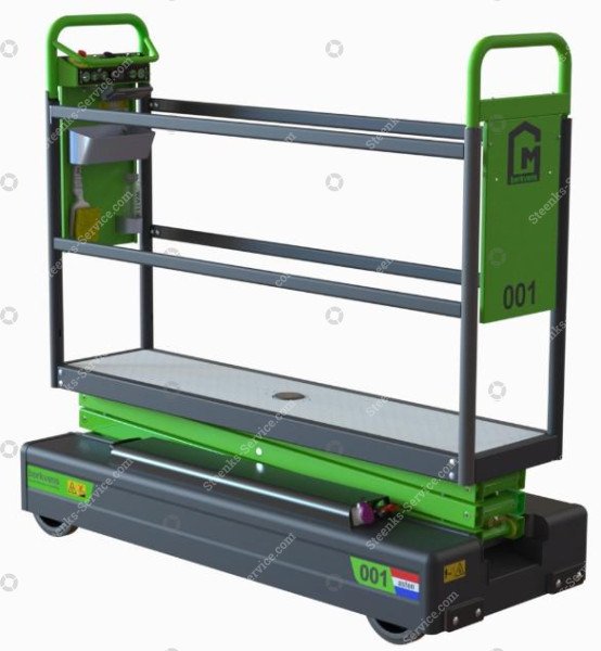 Buisrailwagen GL5000-D Berkvens (BV0000048) UIT VOORRAAD LEVERBAAR! Referentie: BV0000048 Minimale hoogte: 57 cm Maximale hoogte: 500 cm Schaarplatform: 3 Dubbel hydraulisch * buisrailwagen beschikbaar vanaf spoormaat 550 mm. * snelheid elektronisch regelbaar: op de buisrail 0-65 m/min. en high speed knop 95m/min. * met 24 Volt 118 Ah-5h/ 157 Ah-20h vol tractie accu * met accu-indicatie-meter * met uren teller in bedieningspaneel * met scheefstandsmelder * buisdetectie en platformlast beveiliging * met hoofstroom relais om lekspanning te voorkomen * geheel voorzien van 2 lagen poedercoat en vooraf volledig gezandstraald * voor en achter voorzien van speciale stootblokken * met AC-rijmotor met een geheel gesloten/ kettingloze aandrijving * met gietstalen aandrijf en meelooprollen op de buisrail * met 40 mm. brede rubberbetonpad wielen * met RVS waterdicht voetpedaal * met gas/remfunctie schakelaar ten behoeve van voetpedaal * met opbergbakje aan bedieningspaneel * geheel volgens de laatste Europese normen, wet en regelgeving Steenks Service staat voor: - Groot assortiment nieuwe en gebruikte machines - Service, onderhoud en reparaties - 40 jaar ervaring - Eigen onderdelenmagazijn - Service op locatie Levering: Nieuwe en gebruikte machines binnen Nederland GRATIS GELEVERD! Vraag voor verzending van onderdelen en accessoires onze scherpe tarieven op. Garantie: Op al onze nieuwe machines krijgt u 1 jaar garantie. Op al onze gebruikte machines krijgt u 3 maanden garantie. Op alle gebruikte accu’s krijgt u het 1e jaar 50% en het 2e jaar 25% garantie. Kijk voor meer nieuwe en gebruikte machines op onze website: www.steenks-service.nl of bel +31 (0)174-510266.