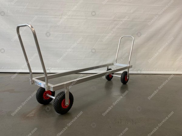 Transportwagen Aluminium op luchtbanden, Steenks Service (BP0000269), 6x op voorraad! Referentie: BP0000269 * voorzien van luchtbanden * voorzien van duwbeugelbussen * met 2 aluminium duwbeugels * frame geschikt voor kisten 60x40 cm. Steenks Service staat voor: - Groot assortiment nieuwe en gebruikte machines - Service, onderhoud en reparaties - 40 jaar ervaring - Eigen onderdelenmagazijn - Service op locatie Levering: Nieuwe en gebruikte machines binnen Nederland GRATIS GELEVERD! Vraag voor verzending van onderdelen en accessoires onze scherpe tarieven op. Garantie: Op al onze nieuwe machines krijgt u 1 jaar garantie. Op al onze gebruikte machines krijgt u 3 maanden garantie. Op alle gebruikte accu’s krijgt u het 1e jaar 50% en het 2e jaar 25% garantie. Kijk voor meer nieuwe en gebruikte machines op onze website: www.steenks-service.nl of bel +31 (0)174-510266.