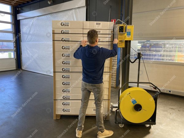 Reisopack 2830 omsnoeringsmachine (VP0000071), uit voorraad leverbaar! Referentie: VP0000071 Type Bindmachine: Semi automatisch * stripspanner: elektrische spanningsregelaar voor de hoogste spanning * eigengewicht: 340 kg. * voltage: 220/240 v 50/60 Hz 1 Phase * elektrisch verbruik: 0,5 KW * tijdsduur 1 pallet met 4 hoeklatten en 3 bandjes in 55 sec. * afmetingen (LxBxH): 112x88x293 cm. * min.-max. striphoogte: 150-2400 mm. * met handrem * batterij: 2x 6v 200ah/5H tractie accu * batterijlader: hoogfrequent ingebouwd in onderstel * verhittingssysteem: elektrisch Kijk hier voor een videodemonstratie: hBUnwasd0so Steenks Service staat voor: - Groot assortiment nieuwe en gebruikte machines - Service, onderhoud en reparaties - 40 jaar ervaring - Eigen onderdelenmagazijn - Service op locatie Levering: Nieuwe en gebruikte machines binnen Nederland GRATIS GELEVERD! Vraag voor verzending van onderdelen en accessoires onze scherpe tarieven op. Garantie: Op al onze nieuwe machines krijgt u 1 jaar garantie. Op al onze gebruikte machines krijgt u 3 maanden garantie. Op alle gebruikte accu’s krijgt u het 1e jaar 50% en het 2e jaar 25% garantie. Kijk voor meer nieuwe en gebruikte machines op onze website: www.steenks-service.nl of bel +31 (0)174-510266.