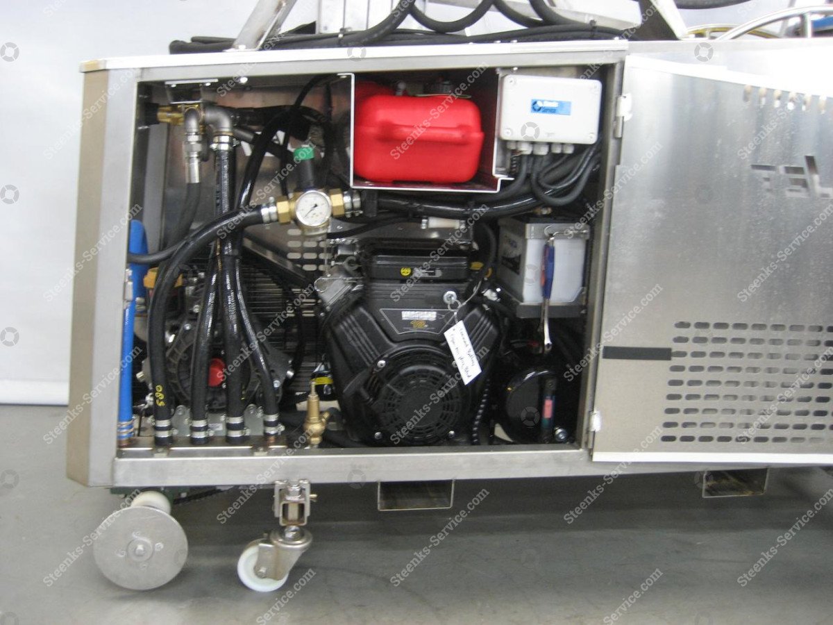 Aqua Jet kasdekreiniger, vd Waay (DIV0000103) Referentie: DIV0000103 Type reinigingsmachine: kadekreiniger * met 18 pk B-S benzine motor * membraam pomp 90 Ltr. 50 Bar * hydraulisch aangedreven slanghaspel * met 150 Mtr. 1" PVC Slang met GK-koppelingen * hydraulisch uitschuifbare mast met casotti spuitkop en is uitschuifbaar tot 6 Mtr. * spuitkop elektrisch beweegbaar van links naar rechts * spoormaat instelbaar van 425-600 mm. hoh * met aanvoerpomp 5,5 m3/ uur en 6 Bar * inclusief gegoten spuitset en hand spuitpistool * met dosseerunit om vloeistof in te spuiten * capaciteit / autonomie per machine: ± 1 HA. in 8 tot 10 uur, afhankelijk van de vervuiling (reinigen van dek en gevel) * bij 5 paden in 1 kap hoef je maar 2 paden in te rijden om gehele dek te reinigen * inspuiten en afspuiten met de mast naar voren gericht met vooruit rijden en naar achter richten met achteruit rijden, voor de beste dekking * om de 1 of 2 tralies inspuiten en afspuiten. Dit hangt af van de gewenste inwerktijd van reinigingsmiddel * geadviseerde rijsnelheid afspuiten met water: 15 mtr. p./min. * geadviseerde rijsnelheid inspuiten met reinigingsmiddel: 50 mtr. p./min. * maximale snelheid is 60 mtr. per minuut * compleet met service/spareparts-kit Kijk hier voor een videodemonstratie: BFuCSNdfNsg Steenks Service staat voor: - Groot assortiment nieuwe en gebruikte machines - Service, onderhoud en reparaties - 40 jaar ervaring - Eigen onderdelenmagazijn - Service op locatie Levering: Nieuwe en gebruikte machines binnen Nederland GRATIS GELEVERD! Vraag voor verzending van onderdelen en accessoires onze scherpe tarieven op. Garantie: Op al onze nieuwe machines krijgt u 1 jaar garantie. Op al onze gebruikte machines krijgt u 3 maanden garantie. Op alle gebruikte accu’s krijgt u het 1e jaar 50% en het 2e jaar 25% garantie. Kijk voor meer nieuwe en gebruikte machines op onze website: www.steenks-service.nl of bel +31 (0)174-510266.