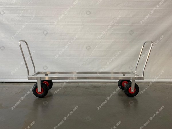 Transportwagen Aluminium op luchtbanden, Steenks Service (BP0000269), 6x op voorraad! Referentie: BP0000269 * voorzien van luchtbanden * voorzien van duwbeugelbussen * met 2 aluminium duwbeugels * frame geschikt voor kisten 60x40 cm. Steenks Service staat voor: - Groot assortiment nieuwe en gebruikte machines - Service, onderhoud en reparaties - 40 jaar ervaring - Eigen onderdelenmagazijn - Service op locatie Levering: Nieuwe en gebruikte machines binnen Nederland GRATIS GELEVERD! Vraag voor verzending van onderdelen en accessoires onze scherpe tarieven op. Garantie: Op al onze nieuwe machines krijgt u 1 jaar garantie. Op al onze gebruikte machines krijgt u 3 maanden garantie. Op alle gebruikte accu’s krijgt u het 1e jaar 50% en het 2e jaar 25% garantie. Kijk voor meer nieuwe en gebruikte machines op onze website: www.steenks-service.nl of bel +31 (0)174-510266.