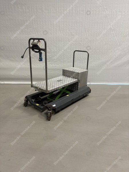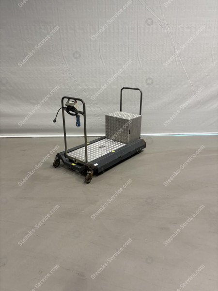 Bladplukwagen Greencart LPC, Berkvens (gebruikt) (BV50), spoormaat 425-51 mm, 6 op voorraad Referentie: BV50 Breedte: hart op hart +25 cm Minimale plateauhoogte: 16 cm. Maximale plateauhoogte: 62 cm. Schaarplatform: Enkel mechanisch * plateau handmatig in stappen van 15 cm in hoogte verstelbaar * platformlengte 93 cm. * met 2 rubberen betonpadwielen * met 2 zwenkwielen * met accu-indicatie-meter * met 24Volt 110 Ah tractie accu * rijsnelheid regelbaar van 0 tot 3,3 km. uur op buisrail * met RVS waterdicht voetpedaal * met een ingebouwde accu lader Steenks Service staat voor: - Groot assortiment nieuwe en gebruikte machines - Service, onderhoud en reparaties - 40 jaar ervaring - Eigen onderdelenmagazijn - Service op locatie Levering: Nieuwe en gebruikte machines binnen Nederland GRATIS GELEVERD! Vraag voor verzending van onderdelen en accessoires onze scherpe tarieven op. Garantie: Op al onze nieuwe machines krijgt u 1 jaar garantie. Op al onze gebruikte machines krijgt u 3 maanden garantie. Op alle gebruikte accu’s krijgt u het 1e jaar 50% en het 2e jaar 25% garantie. Kijk voor meer nieuwe en gebruikte machines op onze website: www.steenks-service.nl of bel +31 (0)174-510266.