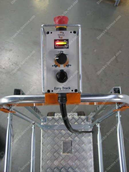Luchtbandenwagen, Benomic easy track (BP0000255) 1x op voorraad Referentie: BP0000255 Minimale hoogte: 69 cm Maximale hoogte: 230 cm * plateau afmetingen (LxB): 116x44,5 cm. * rijsnelheid max 40 mtr. per min. * met 24V 159 Ah/20h tractie-accu * met accu-indicatie-meter * met 24 Volt elektromotor * met 4 luchtbanden * draaicirkel 500 cm. * plateau voorzien van 1 voetschakelaar * reling met 1 deur en afneembaar bedieningsconsole Steenks Service staat voor: - Groot assortiment nieuwe en gebruikte machines - Service, onderhoud en reparaties - 40 jaar ervaring - Eigen onderdelenmagazijn - Service op locatie Levering: Nieuwe en gebruikte machines binnen Nederland GRATIS GELEVERD! Vraag voor verzending van onderdelen en accessoires onze scherpe tarieven op. Garantie: Op al onze nieuwe machines krijgt u 1 jaar garantie. Op al onze gebruikte machines krijgt u 3 maanden garantie. Op alle gebruikte accu’s krijgt u het 1e jaar 50% en het 2e jaar 25% garantie. Kijk voor meer nieuwe en gebruikte machines op onze website: www.steenks-service.nl of bel +31 (0)174-510266.