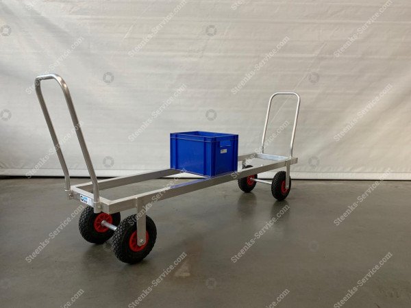 Transportwagen Aluminium op luchtbanden, Steenks Service (BP0000269), 6x op voorraad! Referentie: BP0000269 * voorzien van luchtbanden * voorzien van duwbeugelbussen * met 2 aluminium duwbeugels * frame geschikt voor kisten 60x40 cm. Steenks Service staat voor: - Groot assortiment nieuwe en gebruikte machines - Service, onderhoud en reparaties - 40 jaar ervaring - Eigen onderdelenmagazijn - Service op locatie Levering: Nieuwe en gebruikte machines binnen Nederland GRATIS GELEVERD! Vraag voor verzending van onderdelen en accessoires onze scherpe tarieven op. Garantie: Op al onze nieuwe machines krijgt u 1 jaar garantie. Op al onze gebruikte machines krijgt u 3 maanden garantie. Op alle gebruikte accu’s krijgt u het 1e jaar 50% en het 2e jaar 25% garantie. Kijk voor meer nieuwe en gebruikte machines op onze website: www.steenks-service.nl of bel +31 (0)174-510266.
