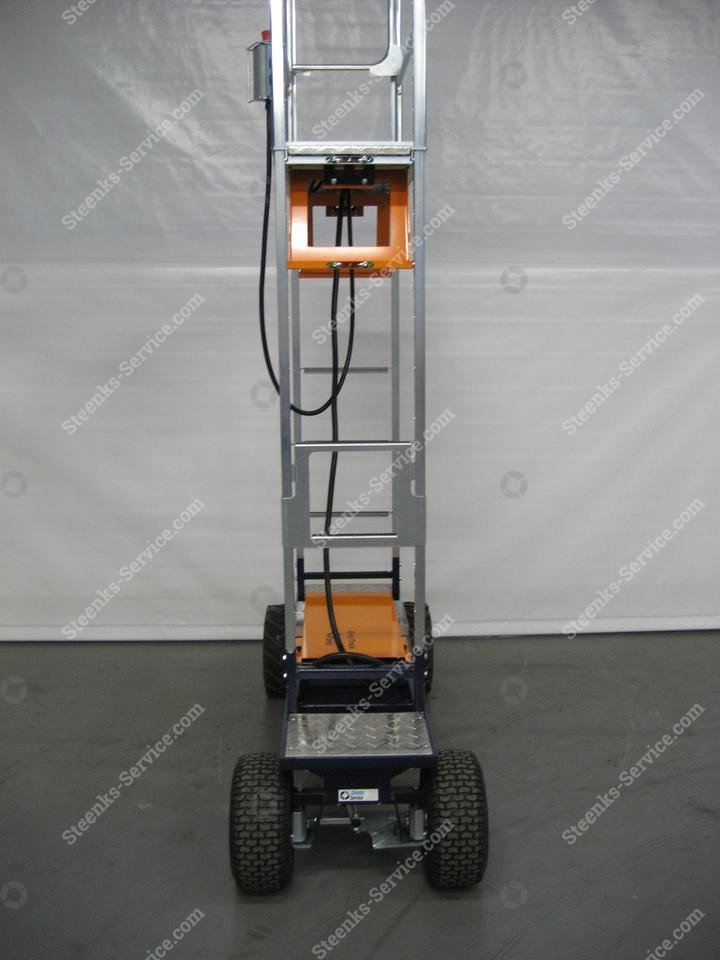 Luchtbandenwagen Benomic Easytrack 280 cm. Berg Hortimotive (BP0000210) 1 op voorraad Referentie: BP0000210 Minimale hoogte: 69 cm Maximale hoogte: 280 cm * plateau afmetingen (LxB): 116x44,5 cm. * rijsnelheid max 40 mtr. per min. * met 24V 159 Ah/20h tractie-accu * met accu-indicatie-meter * met 24 Volt elektromotor * met 4 luchtbanden * draaicirkel 500 cm. * plateau voorzien van 1 voetschakelaar * reling met 1 deur en afneembaar bedieningsconsole Steenks Service staat voor: - Groot assortiment nieuwe en gebruikte machines - Service, onderhoud en reparaties - 40 jaar ervaring - Eigen onderdelenmagazijn - Service op locatie Levering: Nieuwe en gebruikte machines binnen Nederland GRATIS GELEVERD! Vraag voor verzending van onderdelen en accessoires onze scherpe tarieven op. Garantie: Op al onze nieuwe machines krijgt u 1 jaar garantie. Op al onze gebruikte machines krijgt u 3 maanden garantie. Op alle gebruikte accu’s krijgt u het 1e jaar 50% en het 2e jaar 25% garantie. Kijk voor meer nieuwe en gebruikte machines op onze website: www.steenks-service.nl of bel +31 (0)174-510266.