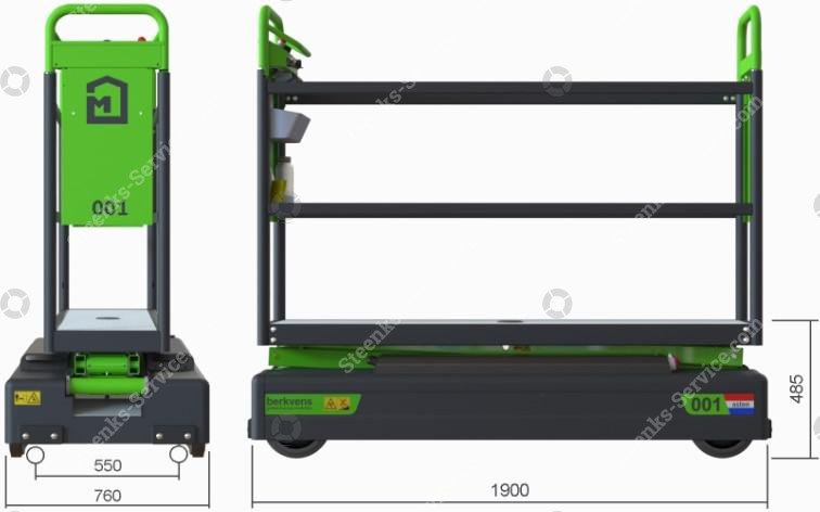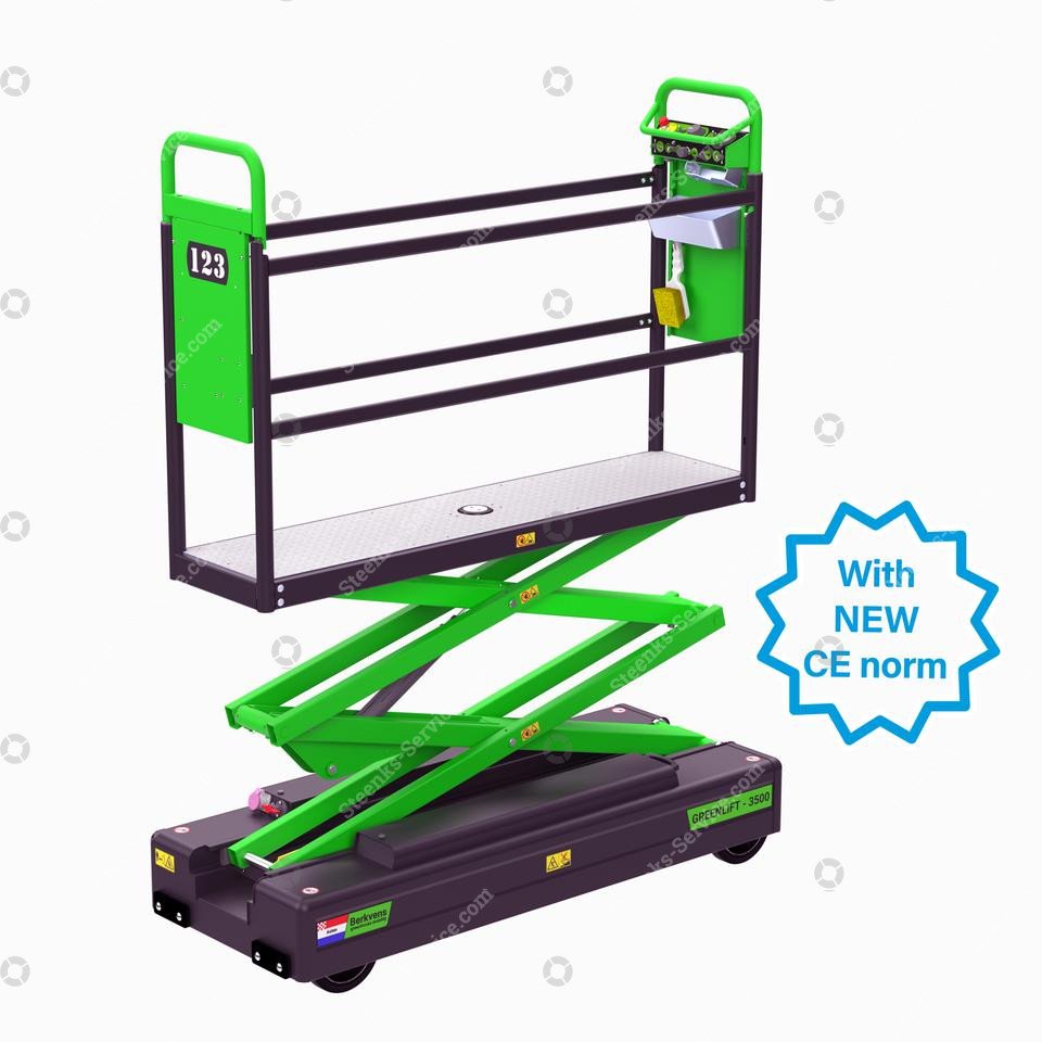 Buisrailwagen GL6400, Berkvens (gebruikt), BV49, 8 stuks op voorraad Referentie: BV49 Minimale hoogte: 78 cm Maximale hoogte: 640 cm Schaarplatform: 4 Dubbel hydraulisch * met 24 Volt 110 Ah tractie accu's * met accu-indicatie-meter in bedieningspaneel * met scheefstandsmelder * met hoofdstroom relais om lekspanning te voorkomen * geheel voorzien van 2 lagen poedercoat * voor en achter voorzien van rubber stootblokken * met stalen aandrijf en meelooprol op de buisrail * met 30 mm. brede pu-betonpad wielen * met RVS waterdicht voetpedaal * met opbergbakje aan bedieningspaneel * voorzien van handstempels aan voor- en achterzijde * met inbouwacculader * plateau verlanger van 35 cm om bij de gevel te komen * met RVS railing en paal voor bedieningspaneel * met reductiekit voor 425-51 mm en 500-51 mm * met wisselrollensystem voor diverse spoormaten Steenks Service staat voor: - Groot assortiment nieuwe en gebruikte machines - Service, onderhoud en reparaties - 40 jaar ervaring - Eigen onderdelenmagazijn - Service op locatie Levering: Nieuwe en gebruikte machines binnen Nederland GRATIS GELEVERD! Vraag voor verzending van onderdelen en accessoires onze scherpe tarieven op. Garantie: Op al onze nieuwe machines krijgt u 1 jaar garantie. Op al onze gebruikte machines krijgt u 3 maanden garantie. Op alle gebruikte accu’s krijgt u het 1e jaar 50% en het 2e jaar 25% garantie. Kijk voor meer nieuwe en gebruikte machines op onze website: www.steenks-service.nl of bel +31 (0)174-510266.