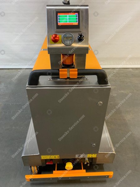 Spuitrobot Meto SWT, Berg Hortimotive (BP0000267) Referentie: BP0000267 * met touchscreen * met tractiebatterijen 24V-260 Ah * met 2 elektrische kleppen * met spuitboomhouder * met 10 ltr. schoonwatertank * met vulkolan aandrijfrol * met zwenk- en middenwielen voor verplaatsing op het betonpad * met dubbele spuitboom RVS 30 dops (1x16 positiedop 8002 en 1x 7 dubbele zwenkbare werveldop TXA) * met manometer * met 2x 1 Mrt. slang met 4 perskoppelingen (lengte spuitboom 2.55 cm.) * met hoogfrequent acculader 230V-50-60Hz, 24V-32A 220 Ah incl. DIN stekker met handvat Kijk hier voor een videodemonstratie: haSI8Co5D9E Steenks Service staat voor: - Groot assortiment nieuwe en gebruikte machines - Service, onderhoud en reparaties - 40 jaar ervaring - Eigen onderdelenmagazijn - Service op locatie Levering: Nieuwe en gebruikte machines binnen Nederland GRATIS GELEVERD! Vraag voor verzending van onderdelen en accessoires onze scherpe tarieven op. Garantie: Op al onze nieuwe machines krijgt u 1 jaar garantie. Op al onze gebruikte machines krijgt u 3 maanden garantie. Op alle gebruikte accu’s krijgt u het 1e jaar 50% en het 2e jaar 25% garantie. Kijk voor meer nieuwe en gebruikte machines op onze website: www.steenks-service.nl of bel +31 (0)174-510266.