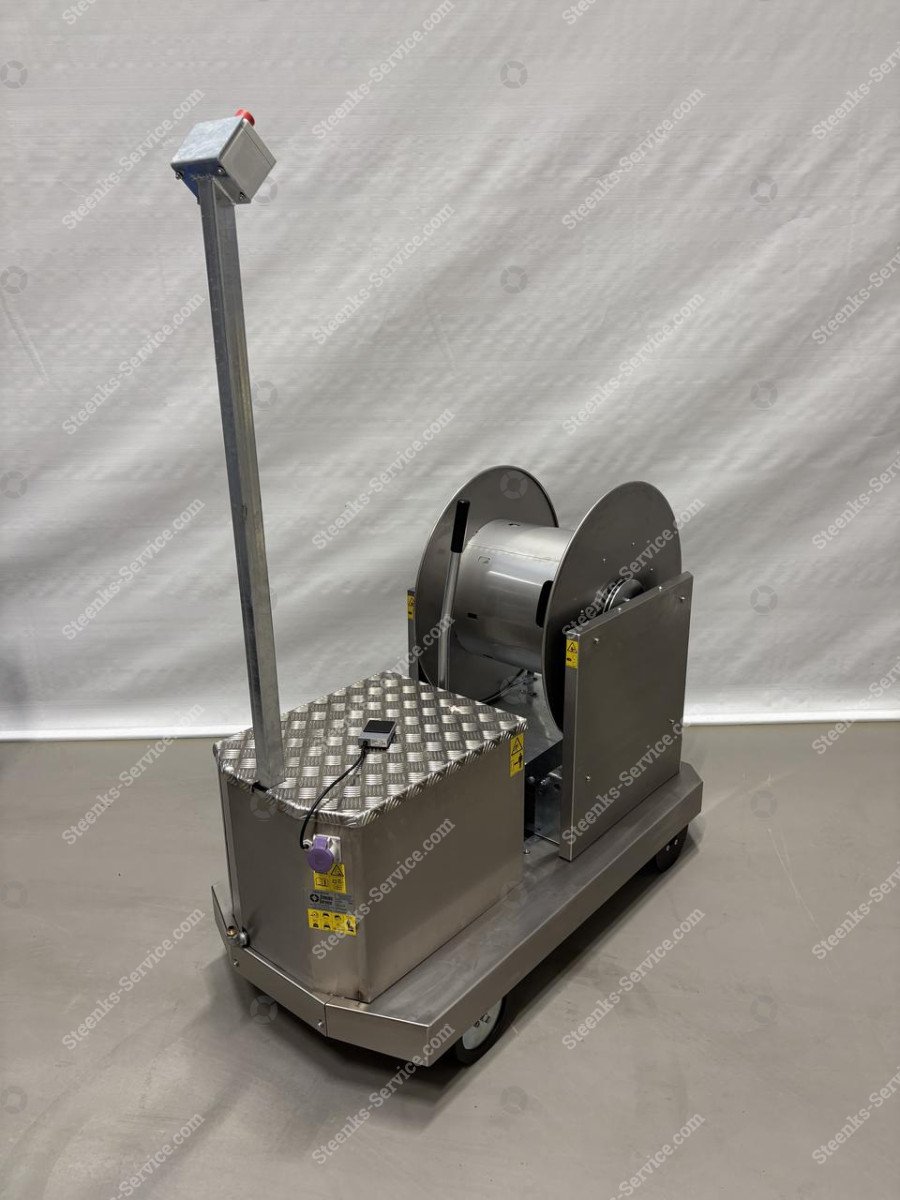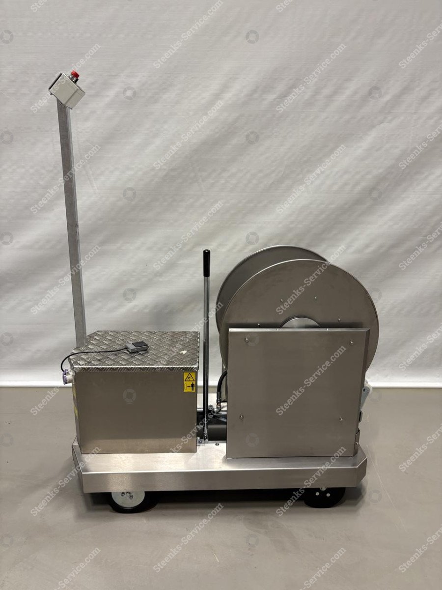 EasySpray RVS spuitwagen 140 cm, Berg Hortimotive (BP0000318) Merk: Berg Hortimotive Spoormaat: 550-51 mm. Lengte: 140 cm. Breedte: 70 cm. Hoogte: 185 cm. Minimale hoogte: 65 cm. Kleur: grijs. * tiptoets bedieningspaal 185 cm * RVS 700x300mm haspel, geschikt voor 130 mtr 1/2" slang * tractie accu 24Volt, 118Ah * aandrijfrol voorzien van PU-loopvlak en POM-c flenzen * kunststof meelooprol met POM-c flenzen * rijsnelheid 0-90 mtr./min * spuitmast op aanvraag Steenks Service staat voor: - Groot assortiment nieuwe en gebruikte machines - Service, onderhoud en reparaties - 40 jaar ervaring - Eigen onderdelenmagazijn - Service op locatie Levering: Nieuwe en gebruikte machines binnen Nederland GRATIS GELEVERD! Vraag voor verzending van onderdelen en accessoires onze scherpe tarieven op. Garantie: Op al onze nieuwe machines krijgt u 1 jaar garantie. Op al onze gebruikte machines krijgt u 3 maanden garantie. Op alle gebruikte accu’s krijgt u het 1e jaar 50% en het 2e jaar 25% garantie. Kijk voor meer nieuwe en gebruikte machines op onze website: www.steenks-service.nl of bel +31 (0)174-510266.