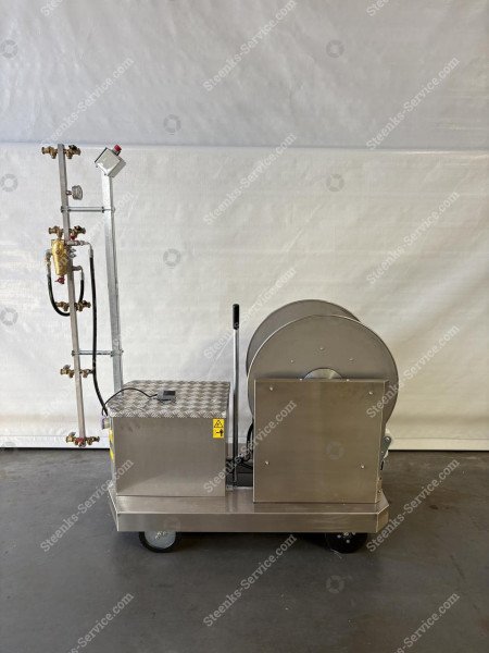 EasySpray RVS spuitwagen 140 cm, Berg Hortimotive (BP0000318) Merk: Berg Hortimotive Spoormaat: 550-51 mm. Lengte: 140 cm. Breedte: 70 cm. Hoogte: 185 cm. Minimale hoogte: 65 cm. Kleur: grijs. * tiptoets bedieningspaal 185 cm * RVS 700x300mm haspel, geschikt voor 130 mtr 1/2" slang * tractie accu 24Volt, 118Ah * aandrijfrol voorzien van PU-loopvlak en POM-c flenzen * kunststof meelooprol met POM-c flenzen * rijsnelheid 0-90 mtr./min * spuitmast op aanvraag Steenks Service staat voor: - Groot assortiment nieuwe en gebruikte machines - Service, onderhoud en reparaties - 40 jaar ervaring - Eigen onderdelenmagazijn - Service op locatie Levering: Nieuwe en gebruikte machines binnen Nederland GRATIS GELEVERD! Vraag voor verzending van onderdelen en accessoires onze scherpe tarieven op. Garantie: Op al onze nieuwe machines krijgt u 1 jaar garantie. Op al onze gebruikte machines krijgt u 3 maanden garantie. Op alle gebruikte accu’s krijgt u het 1e jaar 50% en het 2e jaar 25% garantie. Kijk voor meer nieuwe en gebruikte machines op onze website: www.steenks-service.nl of bel +31 (0)174-510266.
