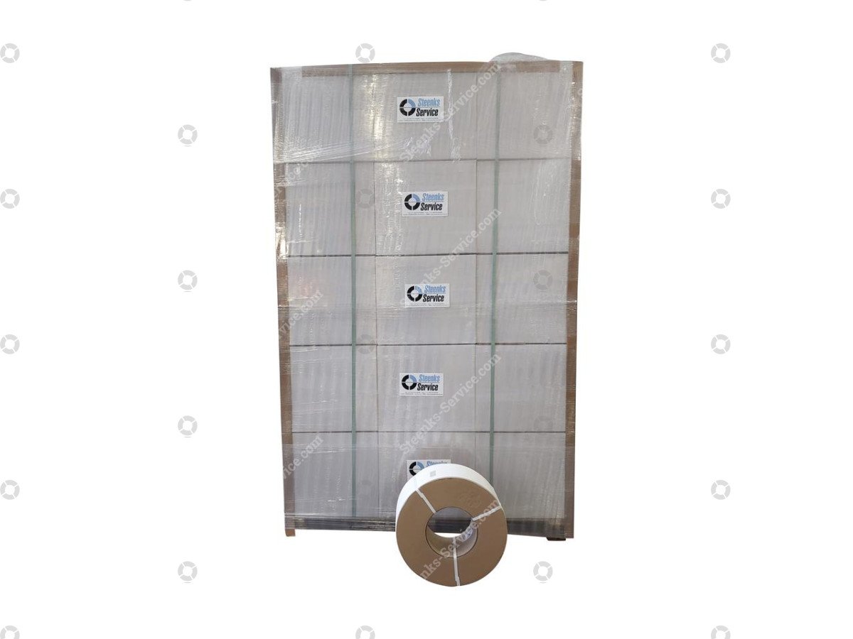 PP omsnoeringsband wit 12x0.63, Steenks Service (VP0000051) OP VOORRAAD Referentie: VP0000051 Kerndiameter: 20 cm Looplengte: 3000 cm Afmetingen lint: 12 x 0,63 mm. mm Polypropyleen omsnoeringsband geschikt voor de Reisopack 2800. * kerndiameter: 20 cm * looplengte: 3.000 meter * 60 rollen per pallet * pallet afmetingen (LxBxH): 135x90x215 cm * pallet gewicht: 720 kg * pallet geschikt voor export (ISPM-15) Steenks Service staat voor: - Groot assortiment nieuwe en gebruikte machines - Service, onderhoud en reparaties - 40 jaar ervaring - Eigen onderdelenmagazijn - Service op locatie Levering: Nieuwe en gebruikte machines binnen Nederland GRATIS GELEVERD! Vraag voor verzending van onderdelen en accessoires onze scherpe tarieven op. Garantie: Op al onze nieuwe machines krijgt u 1 jaar garantie. Op al onze gebruikte machines krijgt u 3 maanden garantie. Op alle gebruikte accu’s krijgt u het 1e jaar 50% en het 2e jaar 25% garantie. Kijk voor meer nieuwe en gebruikte machines op onze website: www.steenks-service.nl of bel +31 (0)174-510266.