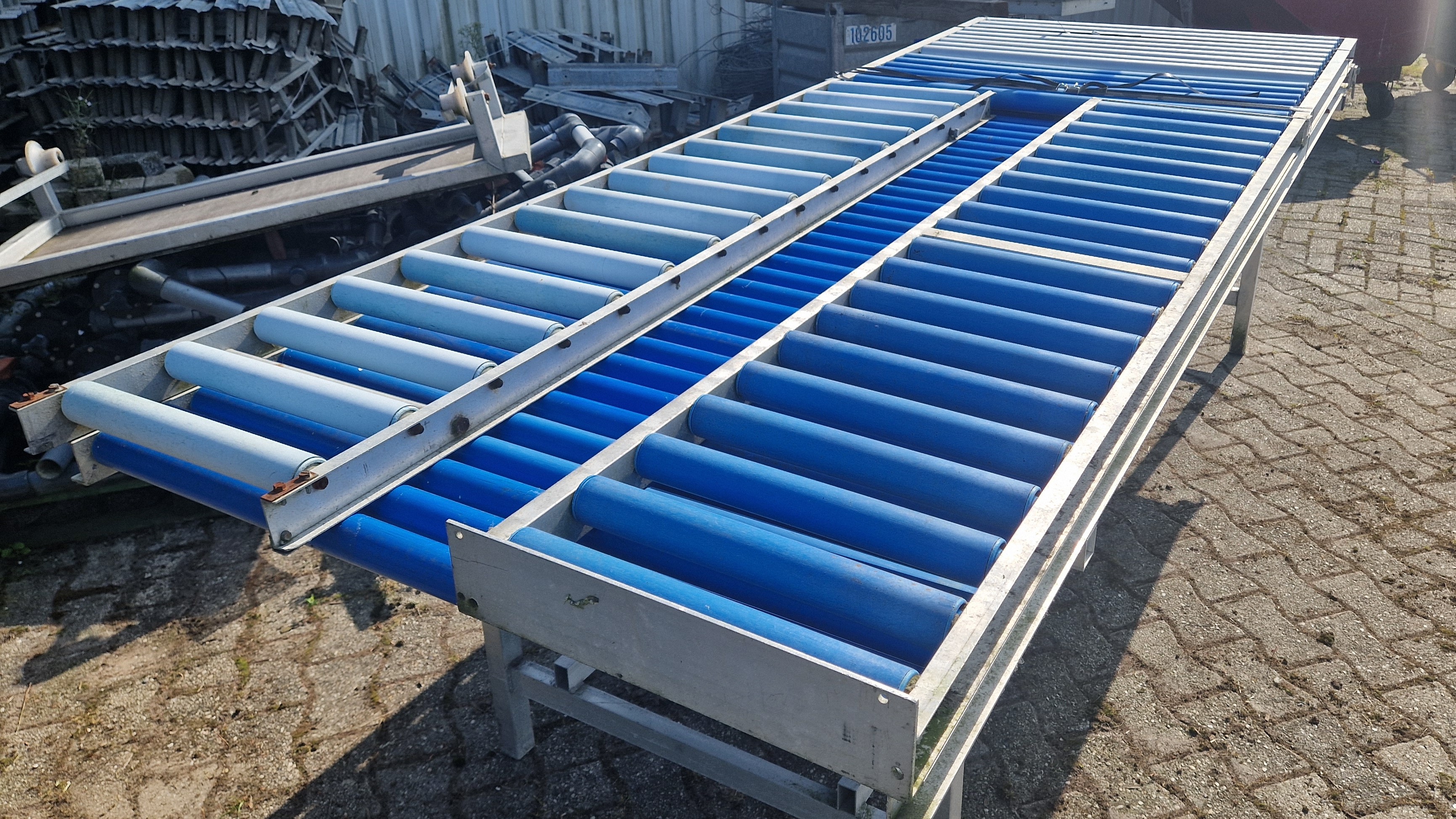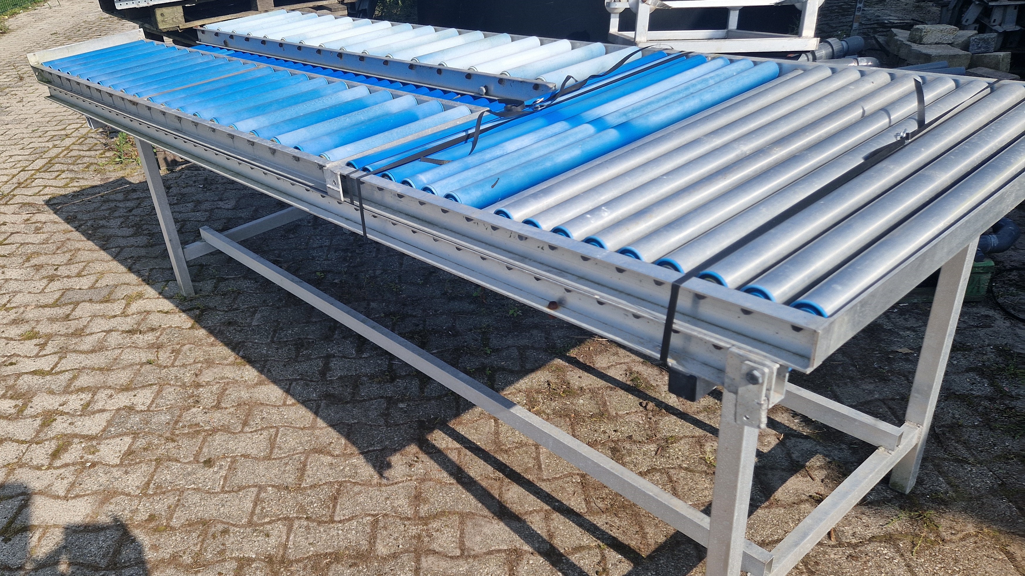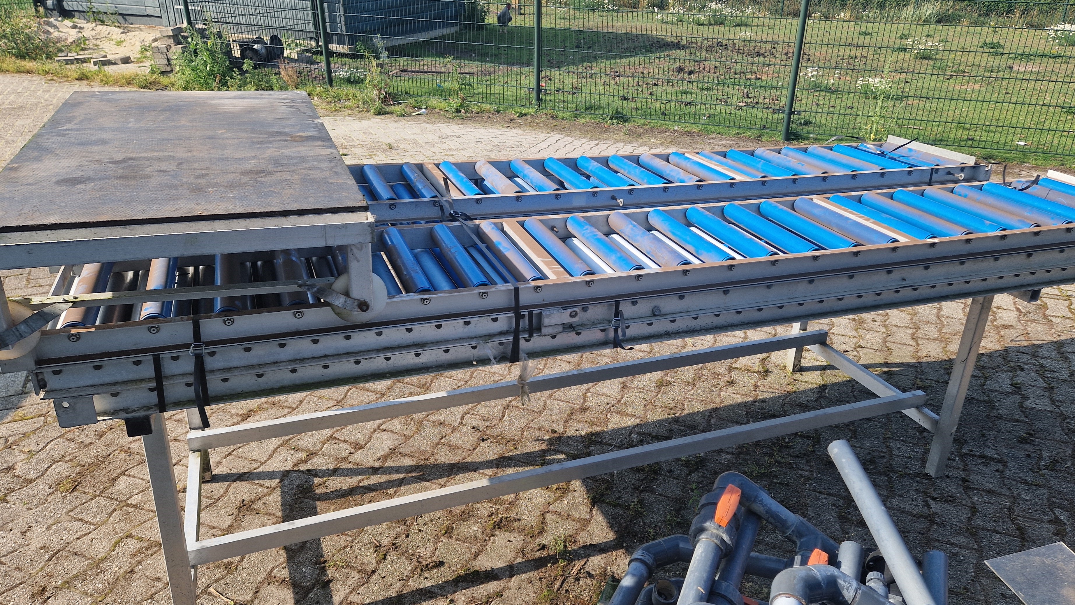 Rollenbaantafel / inpaktafel breedte 110cm, lengte 300 + 100cm (scharnier). + roltafel boven rollentafel + antistatische rollen + rollenbaan 40cm (2x) Rollengte: 103cm Roldiameter: 50mm Hart op hart rollen: 60mm