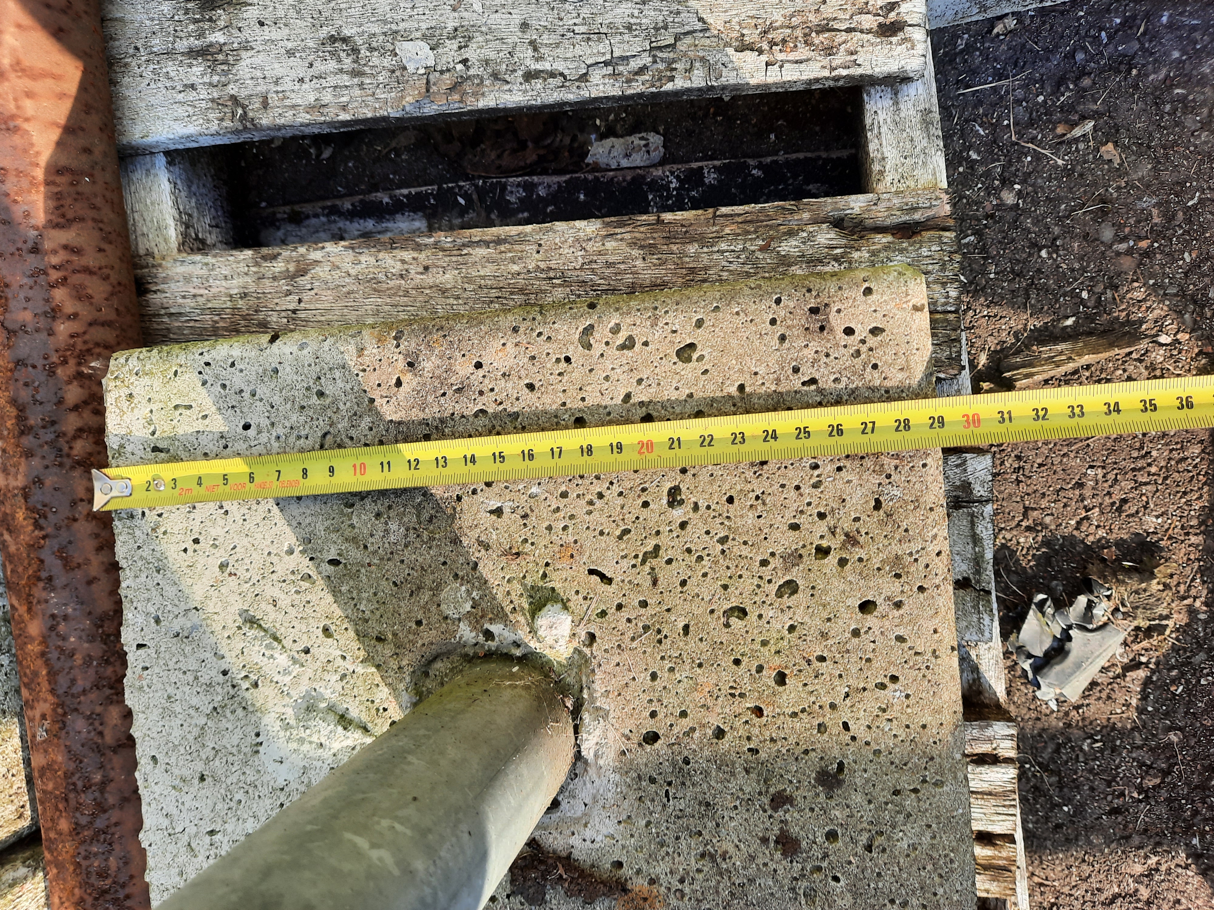 Steunpaaltjes van voormalig WPS systeem voorzien van betonnen voet. Het zijn er 77 stuks. De maat van het beton is 29x29x10 cm. de lengte van de pijp(boven de beton gemeten) is 60 cm. vraagprijs € 250,-