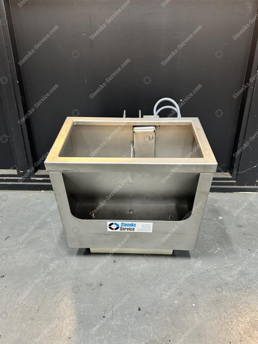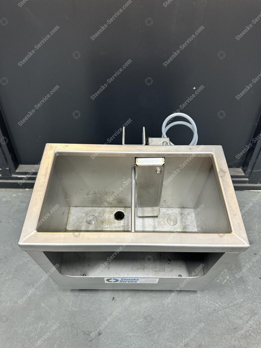 Doopbak/Ontsmettingsbak RVS voor op buisrailwagen, Steenks (DIV212) gebruikt, 11x op voorraad Referentie: DIV212 * de doopbak is geproduceerd van RVS, 316 kwaliteit * alle randen zijn omgezet voor een gladde afwerking * vloeistof niveau regeling in hoogte verstelbaar * instelbare tijdregeling om de buisrailwagen te laten stoppen/starten * materialen bakje geïntegreerd * aftapkraan aan onderzijde gemonteerd waardoor deze makkelijk te legen is * afmetingen ( LxBxH ) 35x22x30cm * de doopbak wordt standaard geleverd met ca. 1 meter lang snoer inclusief 4-polige stekker * met status LED, hierdoor kan de gebruiker zien: dat de tijd is overschreden en er gedoopt moet worden / rijden weer actief is / waterniveau te laag is * te monteren aan koker 40x40mm *met nieuwe timers en vlotter en led Steenks Service staat voor: - Groot assortiment nieuwe en gebruikte machines - Service, onderhoud en reparaties - 40 jaar ervaring - Eigen onderdelenmagazijn - Service op locatie Levering: Nieuwe en gebruikte machines binnen Nederland GRATIS GELEVERD! Vraag voor verzending van onderdelen en accessoires onze scherpe tarieven op. Garantie: Op al onze nieuwe machines krijgt u 1 jaar garantie. Op al onze gebruikte machines krijgt u 3 maanden garantie. Op alle gebruikte accu’s krijgt u het 1e jaar 50% en het 2e jaar 25% garantie. Kijk voor meer nieuwe en gebruikte machines op onze website: www.steenks-service.nl of bel +31 (0)174-510266.